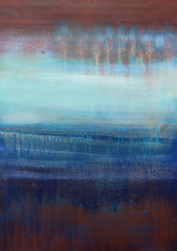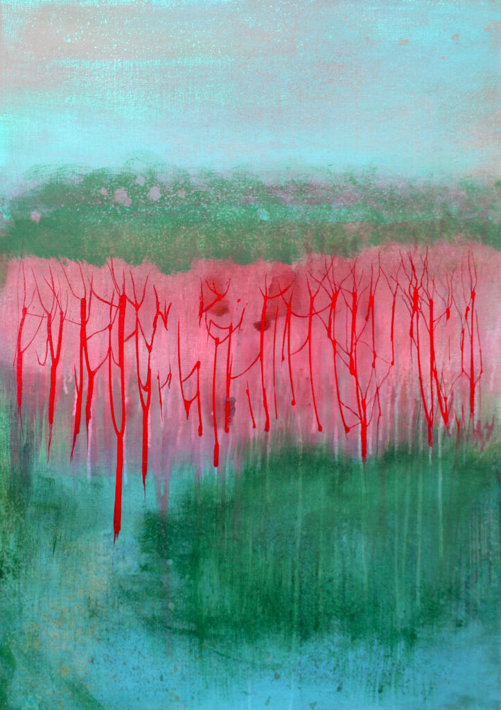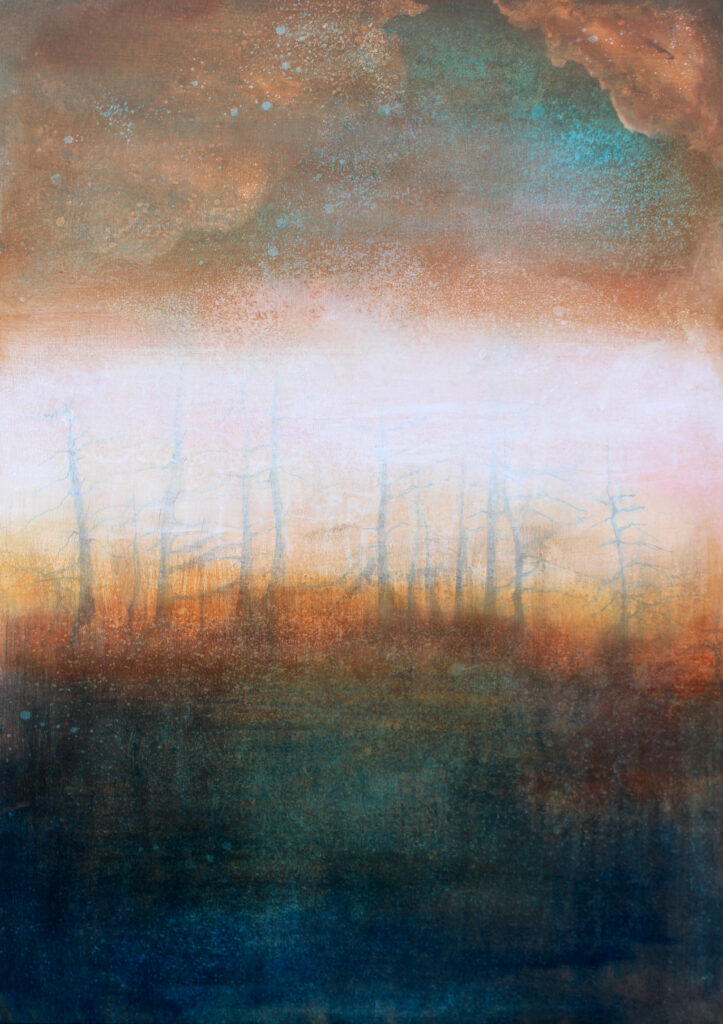 Tworzę w obszarze sztuk wizualnych, łącząc malarstwo, grafikę, kolaż i obiekt. Interesuje mnie Zapis – ślad doświadczeń, pamięci i czasu, który kształtuje tożsamość. W swoich pracach eksploruję, jak materia, struktura i warstwa mogą przechowywać i ujawniać to, co ulotne. Traktuję obraz i formę jako przestrzeń, w której zapis staje się widoczny i nabiera znaczenia.